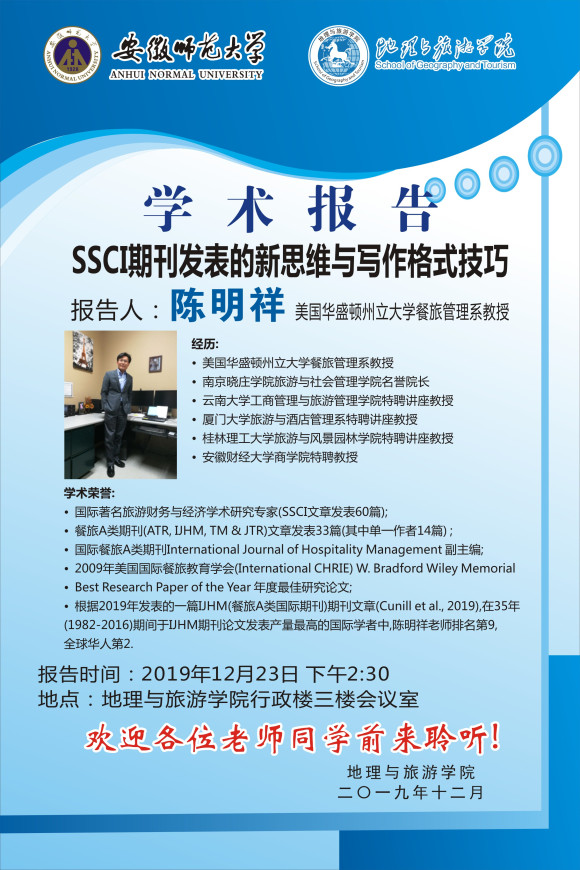 【学术预告】学术报告:SSCI期刊发表的新思维与写作格式技巧