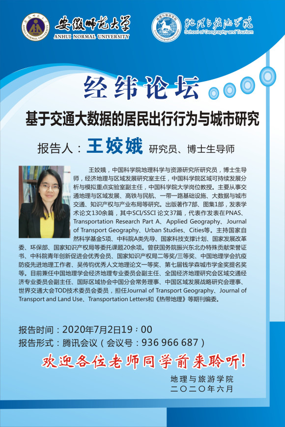 【学术预告】王姣娥:基于交通大数据的居民出行行为与城市研究