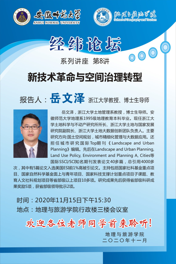 【学术预告】岳文泽:新技术革命与空间治理转型