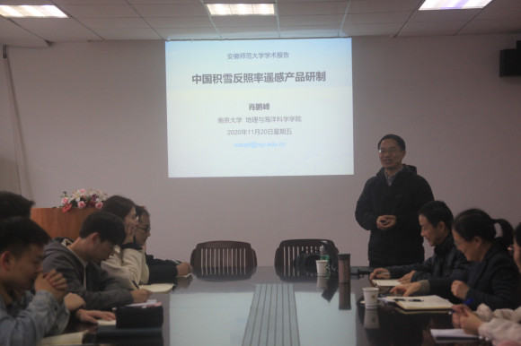 11月20日下午,南京大学地理与海洋科学学院博士生导师肖鹏峰教授应邀在院行政楼三楼会议室,作了题为《中国积雪反照率遥感产品研制》的学术讲座。学院相关专业教师和研究生、本科生聆听了此次报告。