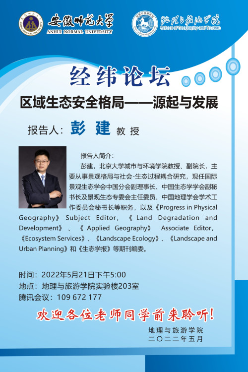 【学术预告】彭建: 区域生态安全格局—源起与发展