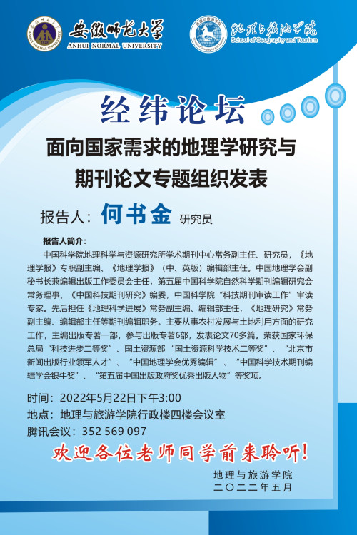 【学术预告】何书金: 面向国家需求的地理学研究与期刊论文专题组织发表