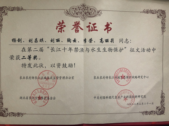 在2022年3月结束的第二届“长江十年禁渔与水生生物保护”有奖征文活动中,杨钊教授领衔的调研成果《激发内生动力,顺应转产心理,导入市场力量——长江流域安徽段禁渔经验总结》荣获二等奖、《长江流域安徽段退捕渔民可持续生计调研报告》荣获鼓励奖。2023年4月21日,农业农村部长江办、农业农村部长江水域生态保护战略研究中心、湖北省长江生态保护基金会和中关村国科现代农业产业科技创新研究院等4家单位在上海举办第二届“长江十年禁渔与水生生物保护”有奖征文获奖作者交流研讨活动,杨钊教授受邀参加并接受颁奖表彰,同时作为唯一一个以退捕渔民可持续生计为研究主题的征文作者就长江流域安徽段退捕渔民生计现状及变化、禁渔经验总结、就业转产典型案例、问题与趋势研判、可持续生计长效对策与建议等内容进行了交流汇报,调研及其成果获得了与会专家和领导的一致认可。