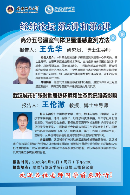 【学术预告·经纬论坛】王伦澈:武汉城市扩张对地表热环境和生态系统服务影响