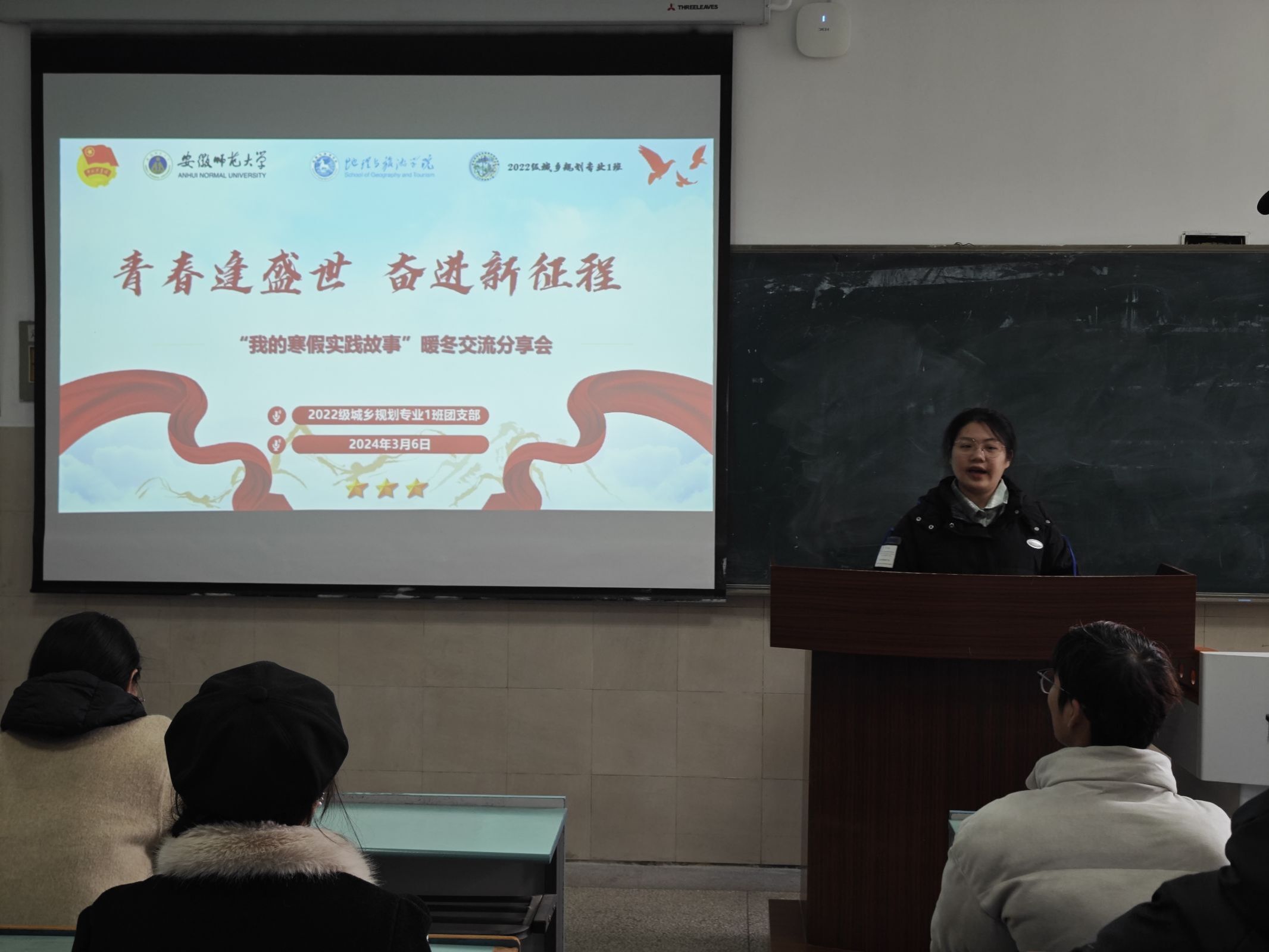 本网讯(王薇)为深入了解同学们寒假社会实践成效、落实实践育人教育成果,3月6日,2022级城乡规划专业1班团支部在行知楼2040301A开展“青春逢盛世,奋进新征程”——“我的寒假实践故事”暖冬交流分享会,对寒假开展的“行走的思政课堂”实践育人项目进行了分享、交流、总结。