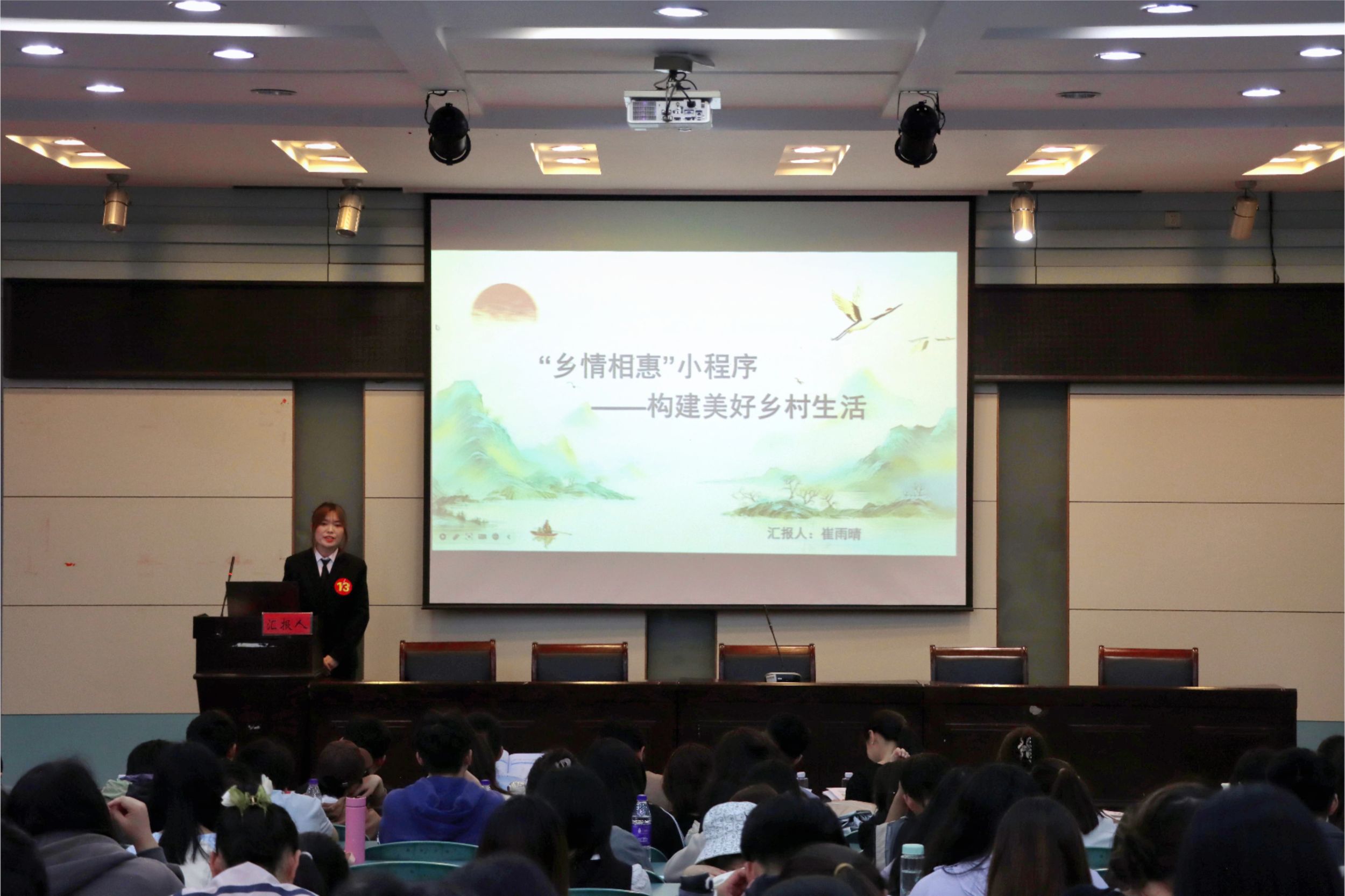 本次评选共有21支团队参与汇报。“拾碳——基于互联网+技术的低碳行为引导平台”团队坚守着可持续发展的理念,专注于推广低碳生活和绿色生态的实践。以“拾碳”为项目灵魂,该团队通过一系列创新举措和环保项目,积极寻求减少大气中二氧化碳含量的有效路径,以减缓气候变化的负面影响,面对众多果农的果品滞销困境,“果‘保’特‘供’”团队以精准的市场洞察和高效的供需对接新模式为果农带来曙光。“智教护航——全球领先的课堂教+学状态评估解决方案”团队针对学生学习中普遍存在的难题,研发了一套创新性的评估系统。它巧妙运用前沿技术,实时监控并精准评估学生的课堂表现,为每位学生提供量身定制的学习支持,同时助力教师优化教学方法,从而提升教学质量,实现学生学习效率的大幅提升;“亳闻强食——中草药膳食一体化服务引领者”团队深谙“食疗同源,药食同根”的古老智慧。他们以这一理念为引领,扎根于“药都”亳州,充分利用当地丰富的药材资源和深厚的医药文化,巧妙融合传统药膳文化与现代饮食习惯,开创了一种健康养生的餐饮新风尚。