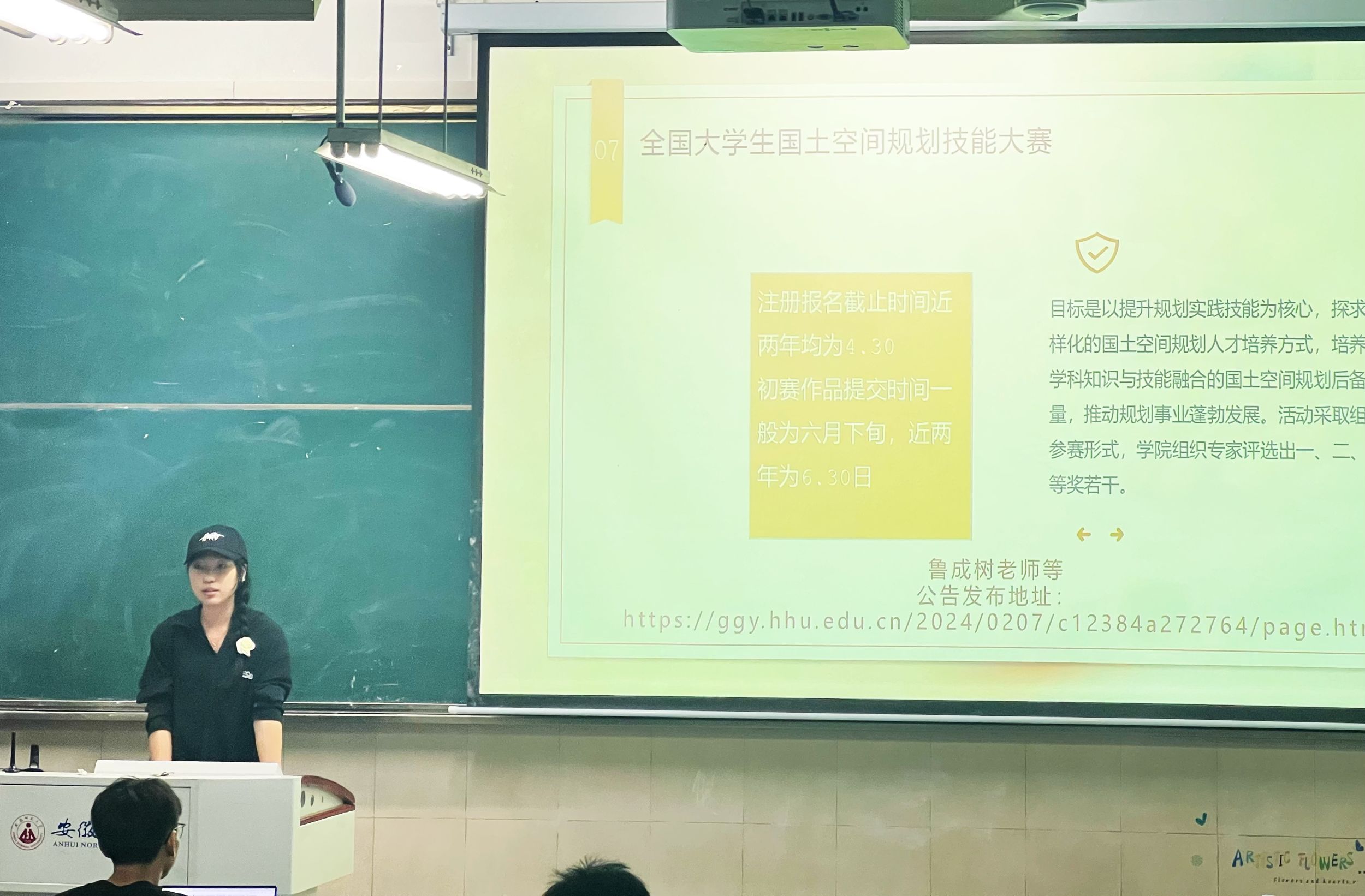 胡羽阳同学首先介绍了“互联网+”、“三创”、“挑战杯”等国家级权威赛事的内容、形式及参赛流程,正如古人云:“会当凌绝顶,一览众山小。”,他鼓励大家要勇于尝试,不畏挑战。赖淑媛同学随后分享了自己在挑战杯、土地国情调查、不动产估价技能大赛等竞赛中的宝贵经验,提供了在时间管理、资料搜集和团队协作等方面的策略和技巧,她建议大家结合即将开展的暑期社会实践及下学期的相关课程,将成果认真打磨优化,与竞赛相结合,以赛促学,以学促赛。李诗毅同学则着重介绍了国土空间规划技能大赛,鼓励两个班级跨专业合作组队,通过知识融合、技能互补,充分发挥每个成员的专业优势,增强团队的综合竞争力。王冰冰同学就学科竞赛的重要性进行了阐述,参与学科竞赛不仅能够锻炼同学们的专业技能,而且能培养团队合作精神和解决问题的能力。李长乐同学则从挑选竞赛原则的角度,引导大家选择适合自己能力的竞赛项目。