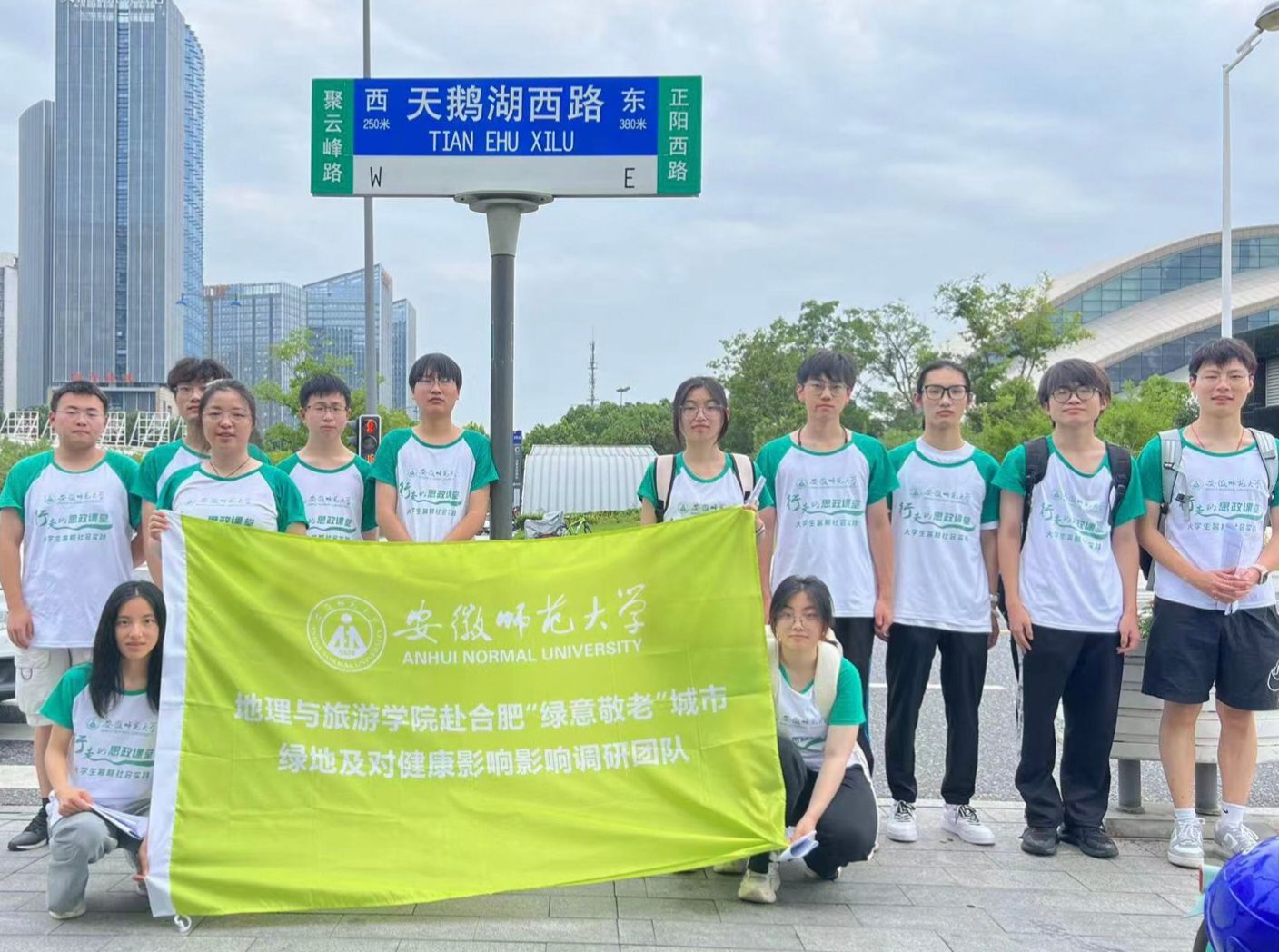 2024年7月15日早晨,我们迎来了团队最后一个调研点位——天鹅湖公园。天鹅湖原名荷叶地,因湖面呈天鹅形状得名。环湖有合肥大剧院、天鹅湖体育馆、安徽省博物馆、合肥市政务双子大楼、安徽新广电中心等安徽省标志性建筑。其服务功能覆盖的面积广阔,环境宜人。队员们以放松的心态,完成了调研工作的最后步骤,并在天鹅湖公园的北门门口拍摄了团队合照,标志着地理旅游学院赴合肥“绿意敬老”城市绿地及对健康影响调研团队工作的圆满结束。期待后期数据统计和分析完成后的调研成果!