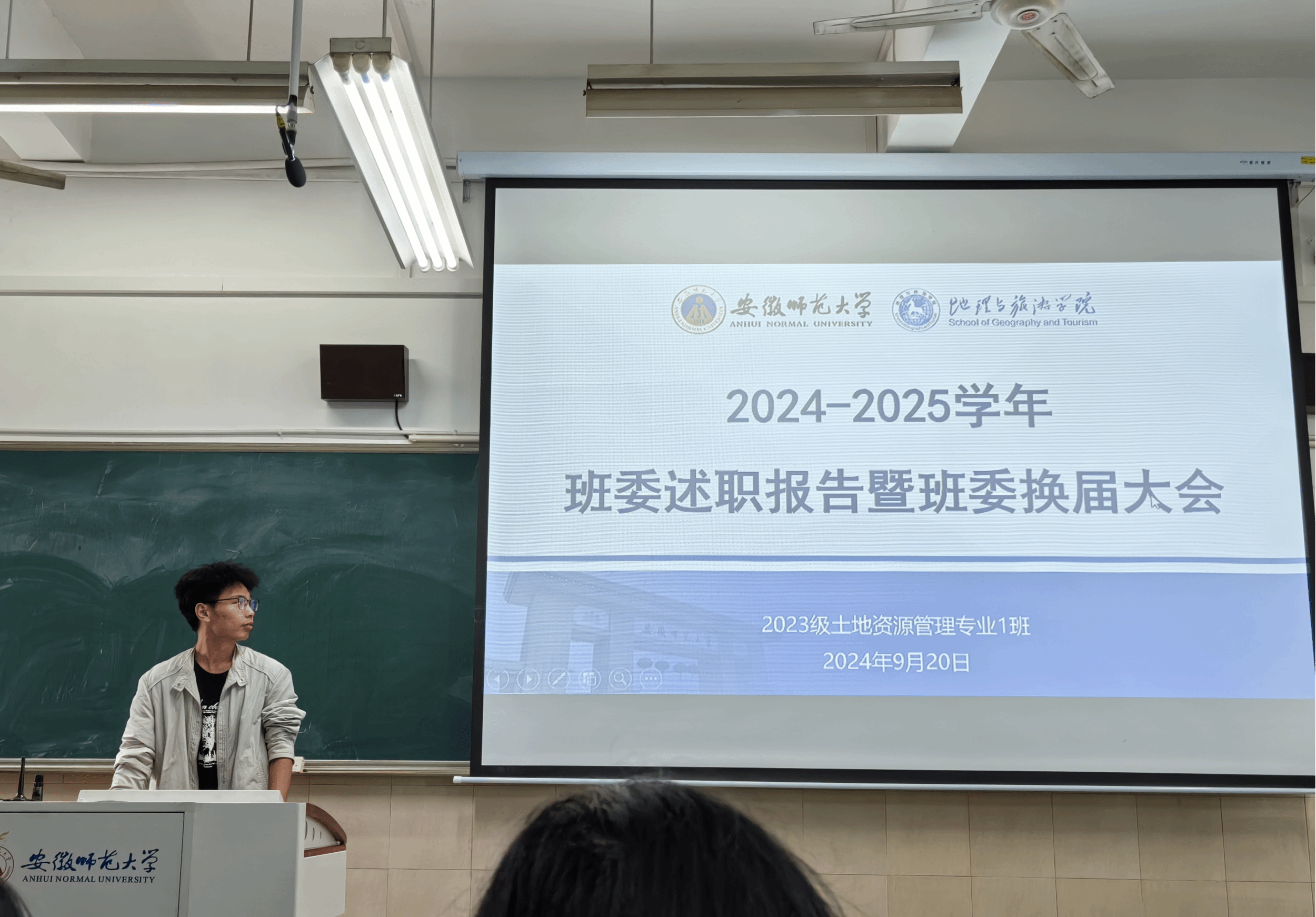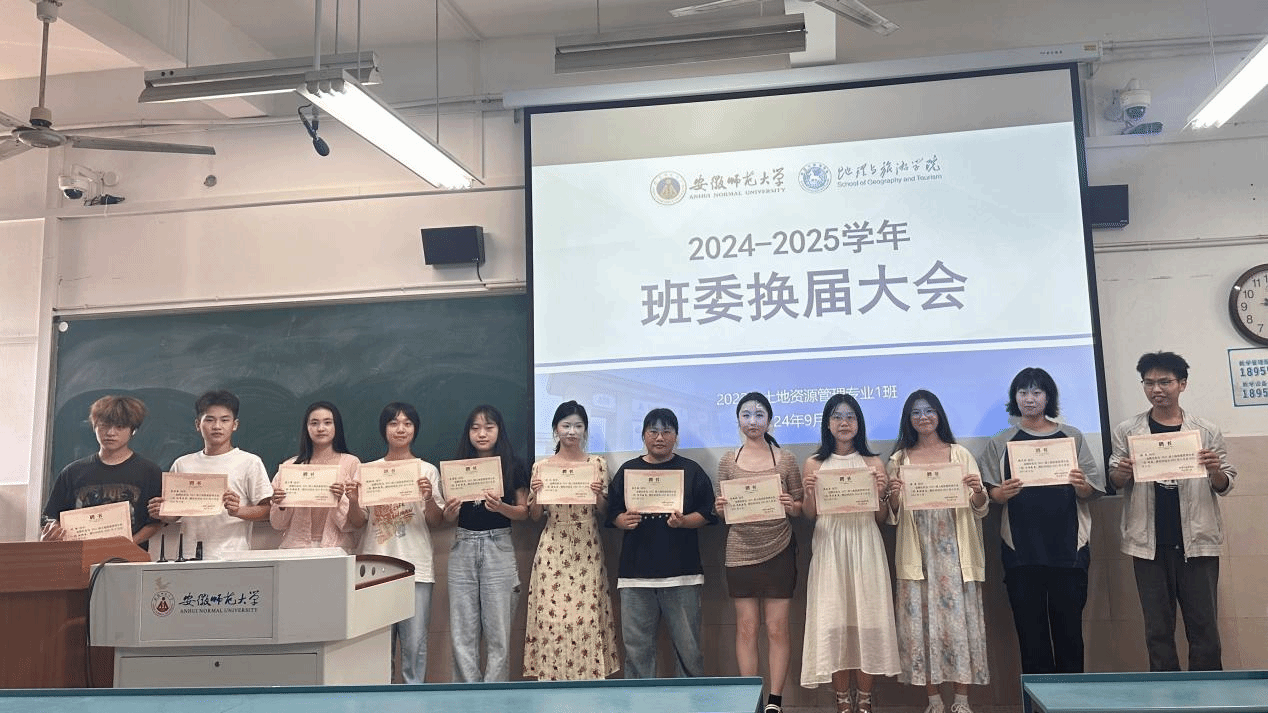 唐艺瑜、殷齐悦)金秋送爽,迎来了新的学年。展望未来启新程,不忘初心重传承,2024年9月20日下午,2023级城乡规划专业、2023级土地资源管理专业2024-2025学年班委述职报告暨班委换届大会分别于行知楼2040401、2040401A教室举行,会议由两位班长主持,全体同学参加。