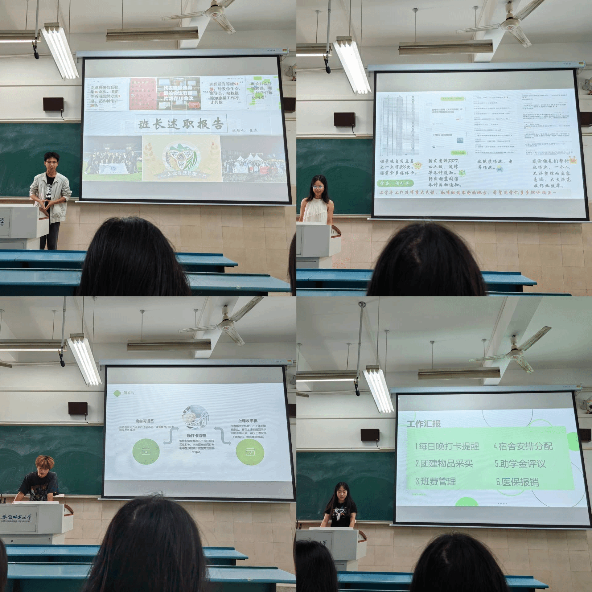 下午3时,大会在全体学生热烈的掌声中拉开帷幕。上一届班委成员逐一上台,以详实的数据和生动的案例,回顾了过去一年的班集活动、学习成果与班级建设情况。他们不仅分享了成功的经验,也坦诚地指出了工作中的不足,为新一届班委提供了宝贵的参考。