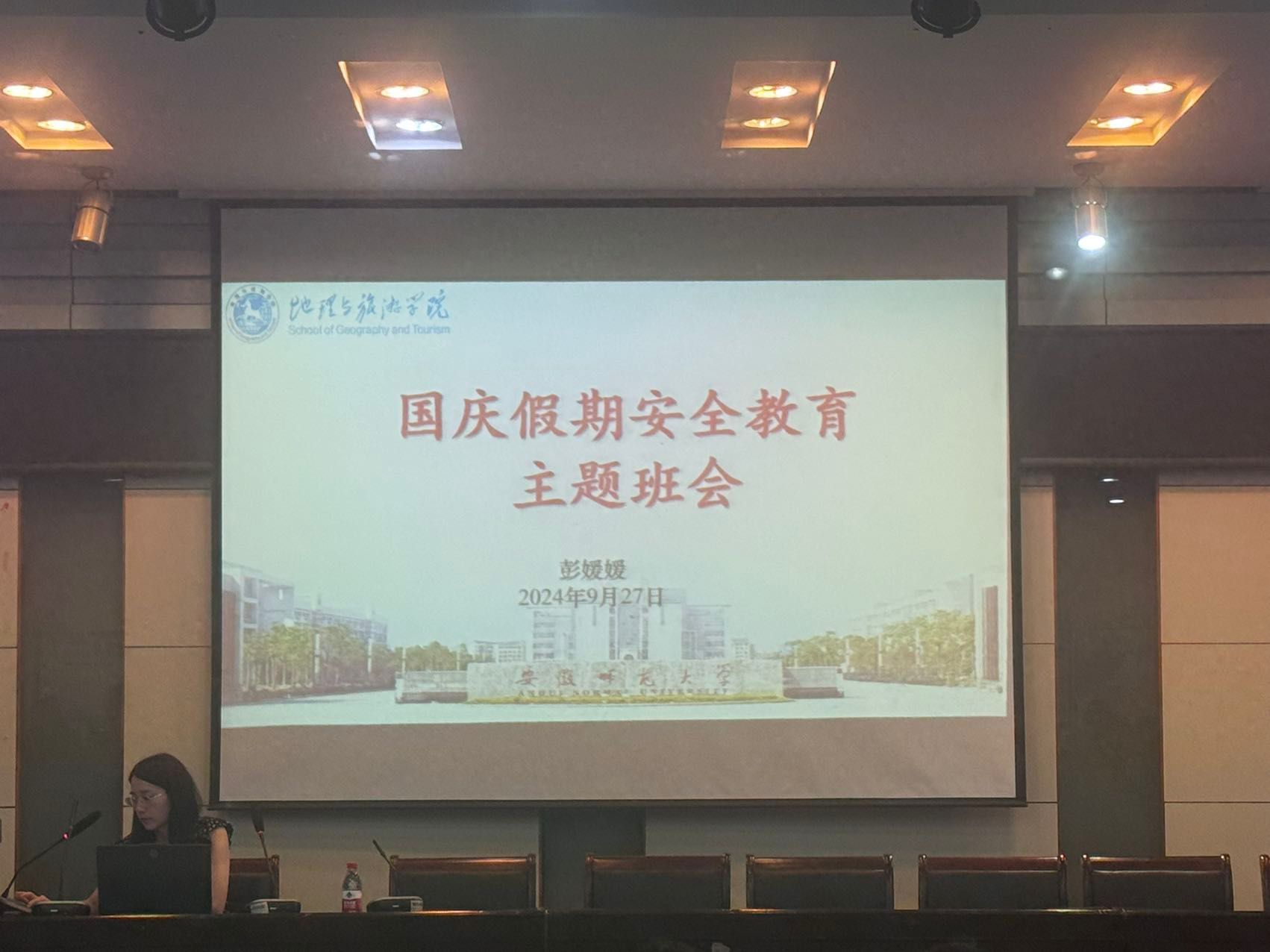 在实验楼 101 召开了一场充满人文关怀的国庆假期安全教育主题班会,本次班会由辅导员彭媛媛主持,各班全体成员参会。