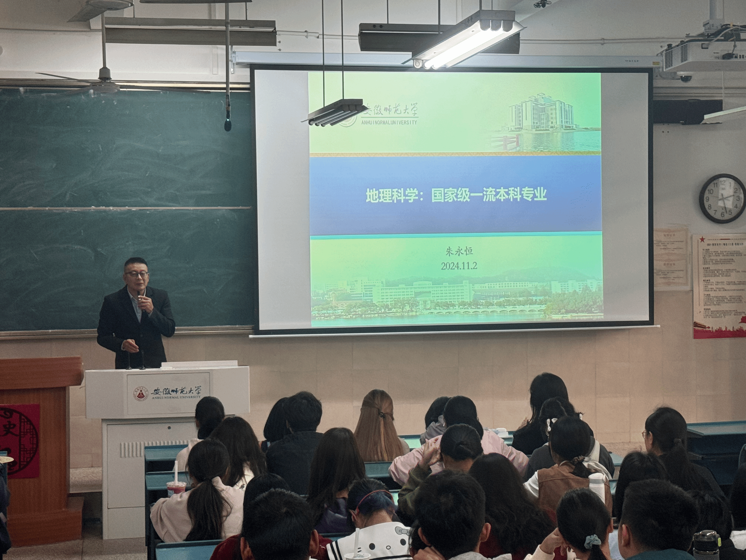 田柏闻、何诗雨)11月2日下午,我校2024级地理科学专业在行知楼召开“学科素养”主题会议。会议由地理科学专业负责人朱永恒教授主持,地理科学全体同学参加。会议旨在为同学们指点迷津,让同学们在面对学习和生活的困惑时,明确前行的方向。