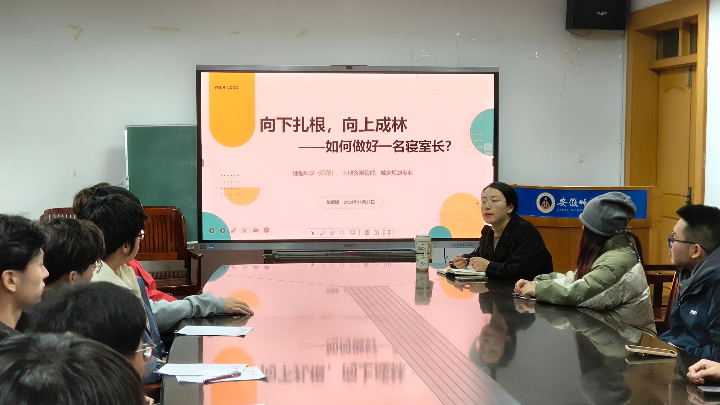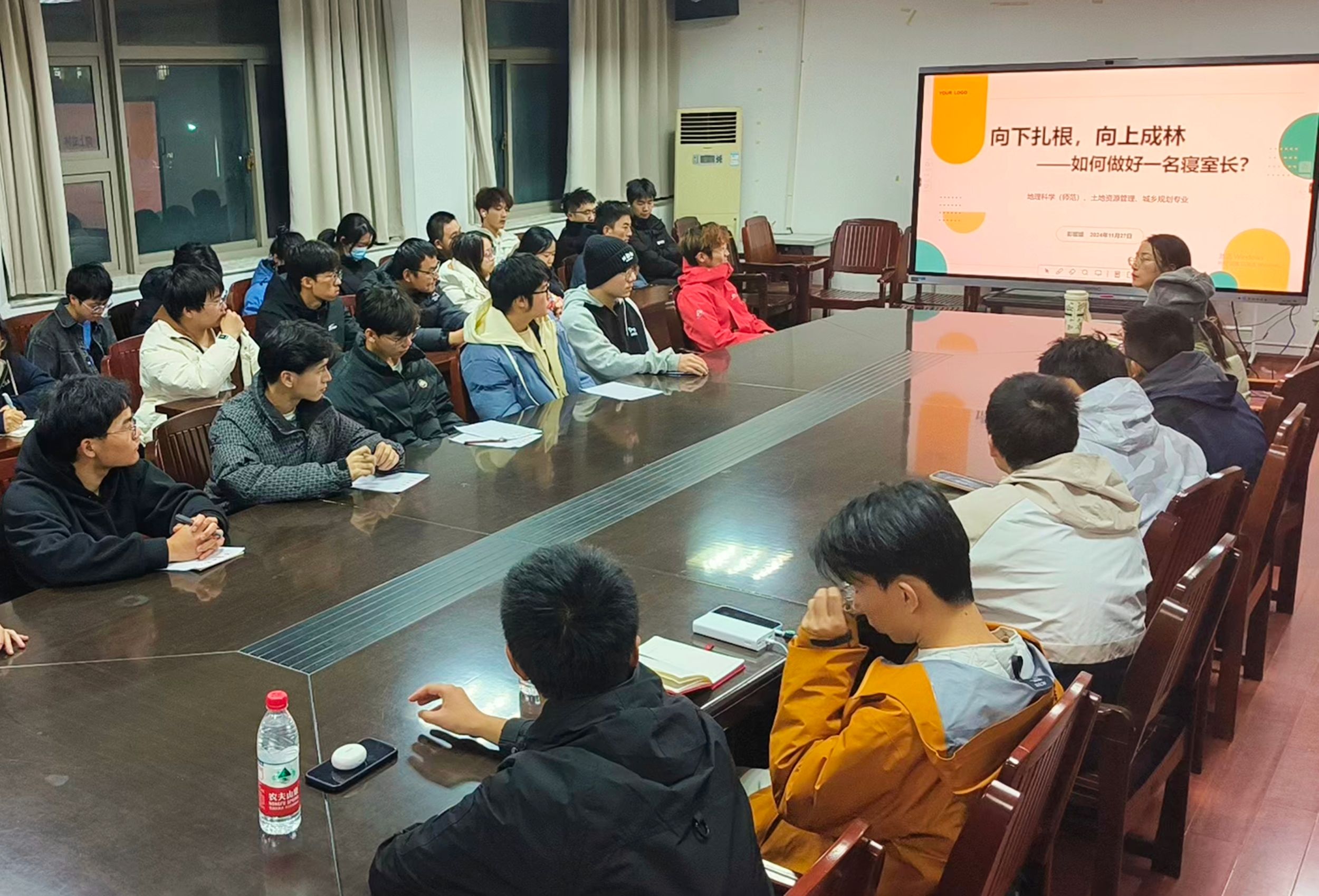 于11月27日在行政楼三楼会议室组织召开了以“向下扎根,向上成林——如何做好一名寝室长”为主题的寝室长会议。本次会议由辅导员彭媛媛担任主讲人,地理科学(师范)、土地资源管理与城乡规划专业全体寝室长参与此次会议。