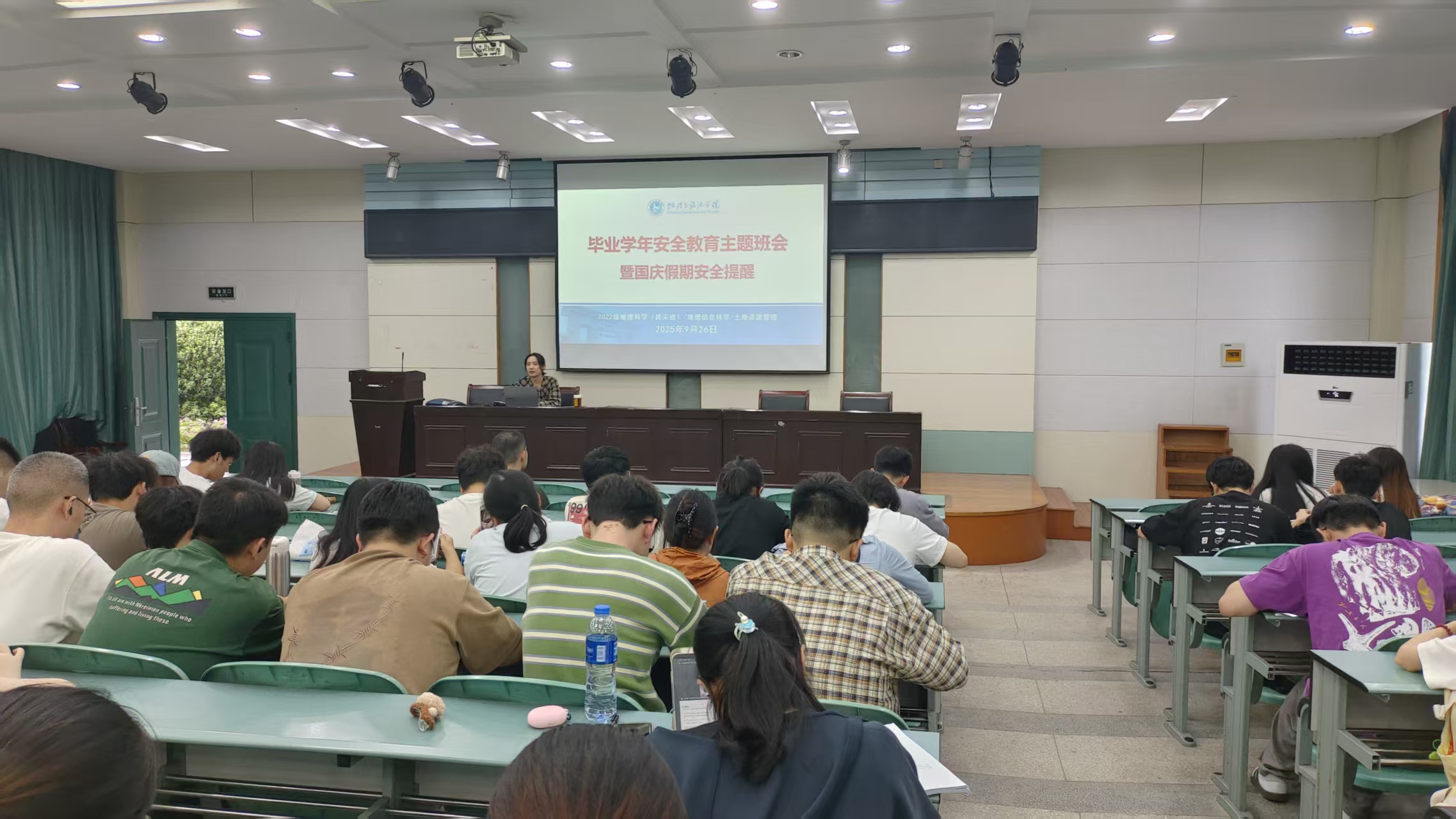 2022级地理科学(拔尖班)、地理信息科学、土地资源管理专业全体同学齐聚实验楼101报告厅,召开毕业学年安全教育主题班会暨国庆假期安全提醒专题会议。班会由陈祥云主持。