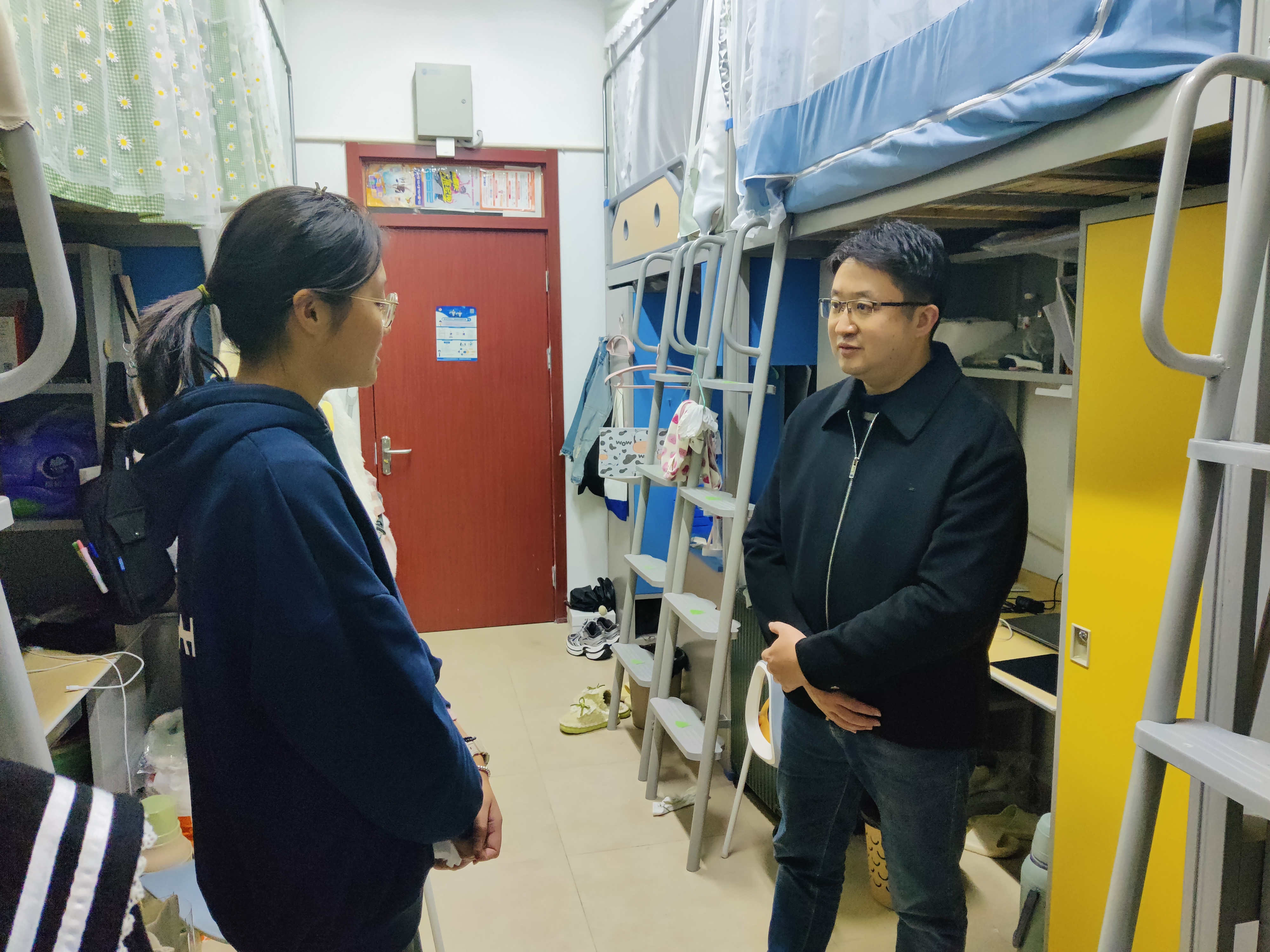 学院党委副书记钱程和辅导员们深入学生社区,细致关心同学们的日常生活起居、学业进展与未来规划,并针对不同学生的具体情况,进行了个性化的谈心谈话与情绪疏导,将温暖的关怀与专业的指导送到学生身边,打通了心理育人工作的“最后一公里”。