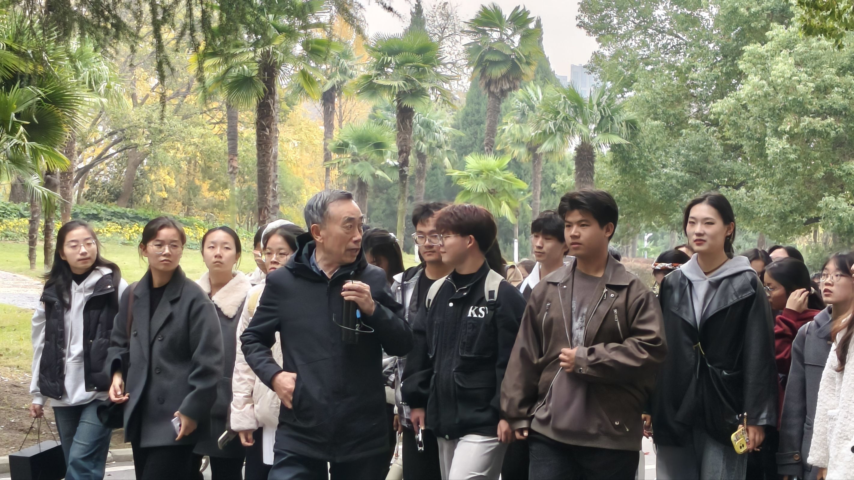 随后,在查老师的引领下,大家漫步赭山校区,实地走访学院旧址、皖江中学堂、司令部旧址等多处具有历史意义的场所。沿途树木葱茏,古木成荫,查老师细致讲解建筑渊源与校园变迁,使成员在行走中沉浸式感受学校深厚的文化积淀。
