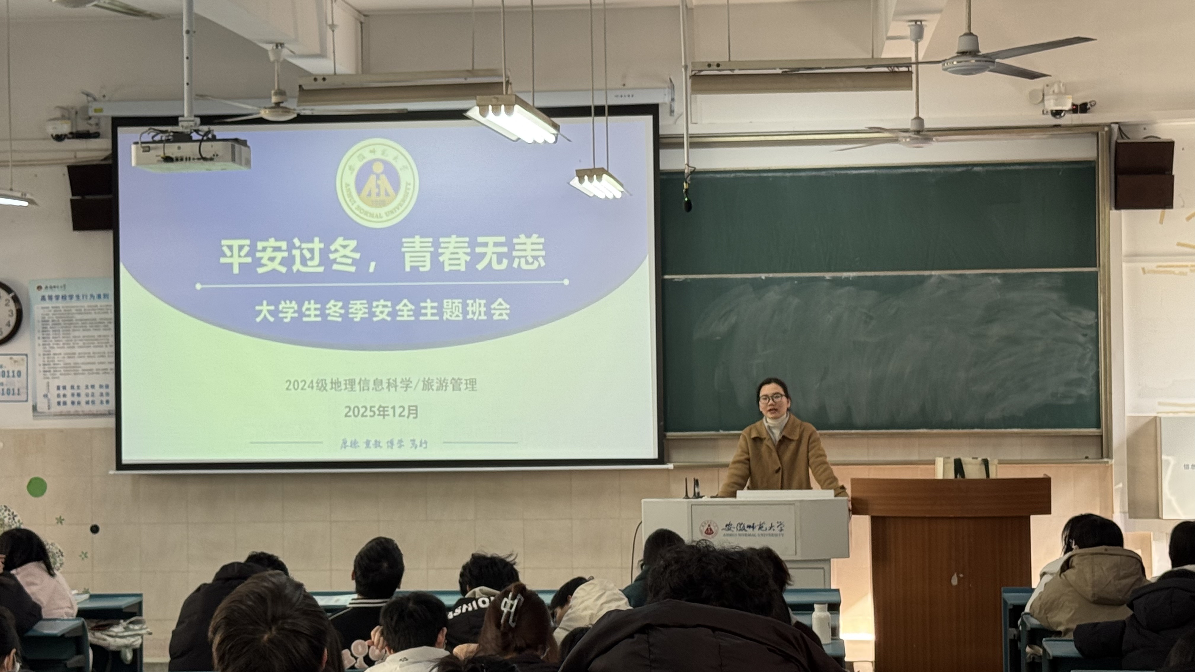 2024级地理信息科学、旅游管理专业组织召开了“寒冬守安全,青春护成长”冬季安全教育主题班会。班会由辅导员韦银艳主持。