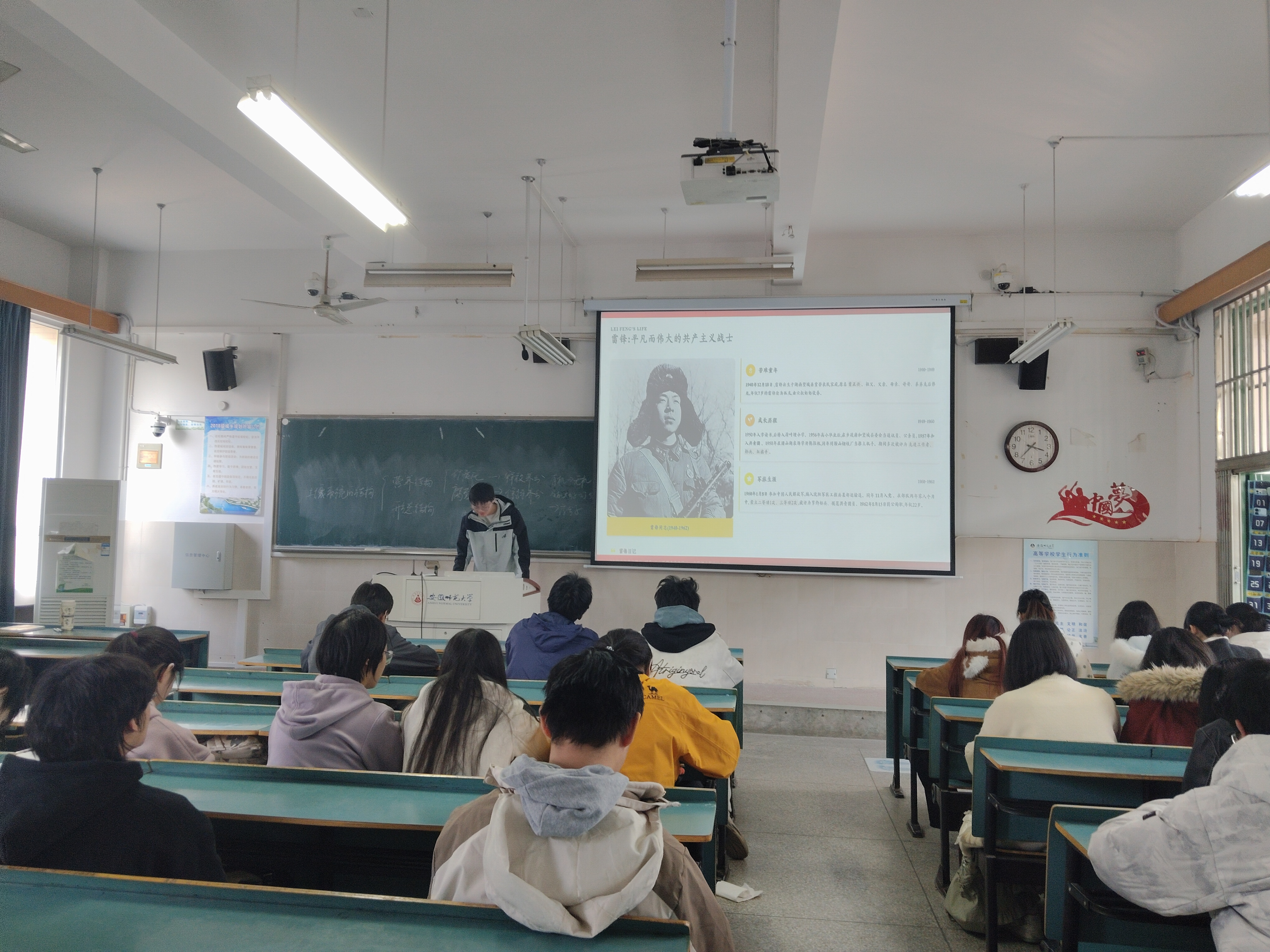 为深入学习贯彻雷锋精神,引导青年学子坚定理想信念、厚植奉献情怀,3月27日下午,2024级地理信息科学2班在行知楼3号楼404召开了以“传承雷锋精神 奉献青春力量”为主题的团日活动,带领全体团员走近雷锋、感悟精神、践行使命。