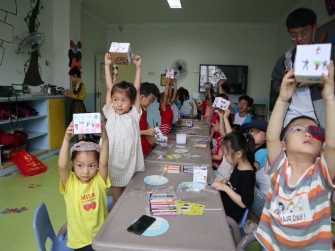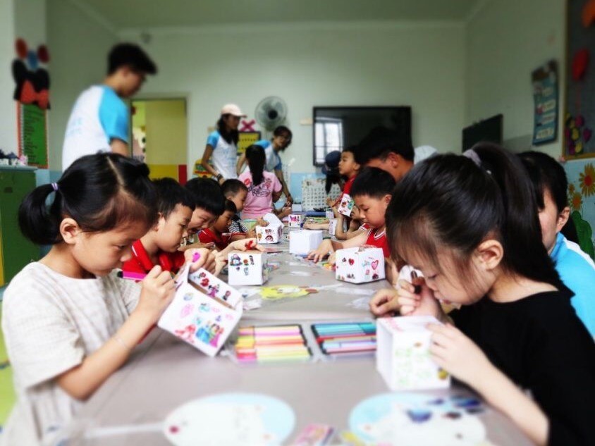 团队队员先是通过问答小游戏的方式帮助孩子们了解垃圾分类的小常识,孩子们争先恐后十分积极,通过这种轻松的方式使孩子们对一些常见垃圾的分类方式有了简单的了解。该团队队员还精心设计实际操作环节,带领孩子们一起制作环保纸盒,纸盒的材料均来自可回收纸板,实现资源的可持续利用,以此来引导孩子们增强垃圾回收的意识。小朋友还在纸盒上绘制上自己喜欢的图案,表现出了极大的热情。团队队员们也在一同制作的过程中向孩子们传递了环境保护的重要性,普及了环境保护的小知识,并引领他们将垃圾进行分类,引导他们在活动中掌握知识,在活动中逐渐养成良好的习惯,以达到环保知识教育的目的。