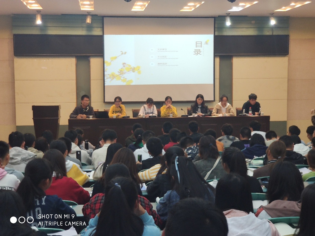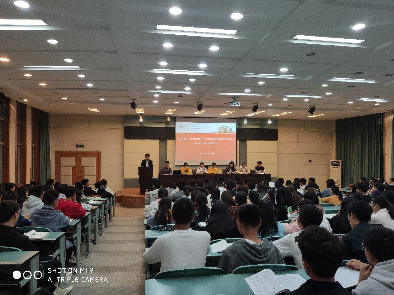武诺 齐小学)11月3日晚,2019级地理科学大类专业在学院实验楼101报告厅召开新老生经验交流会。2018级地理科学大类专业杨帆、程茜、陈健、冯安兰、章皓宇、汪岩、张良敏等7名优秀老生代表,2019级地理科学(拔尖人才班)、2019级地理科学类1班、2019级地理科学类2班全体同学参加交流会。会议由辅导员齐小学主持。