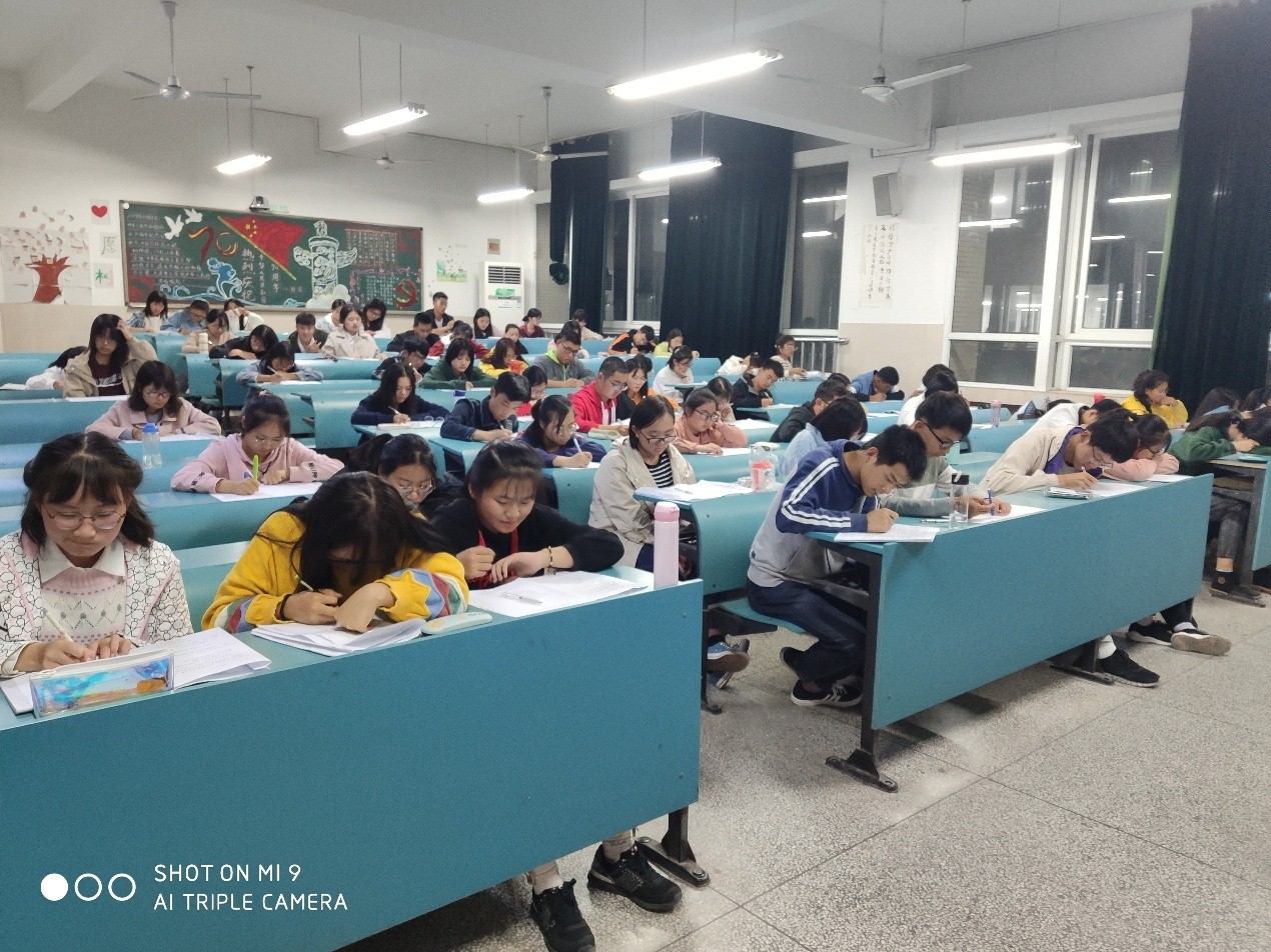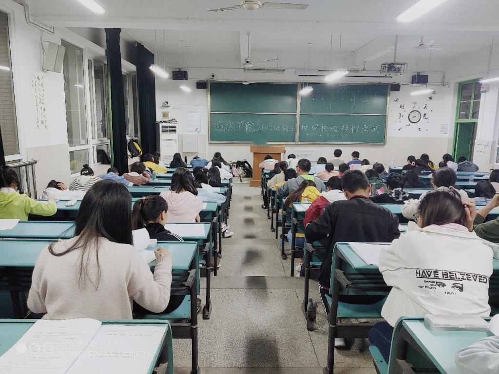 在行知楼2019级新生固定自习教室进行校纪校规模拟考试,考试内容为《安徽师范大学学生手册》和《安徽师范大学章程》内学生应知应会部分。学院学生会各部门部长及副部长负责监考。
