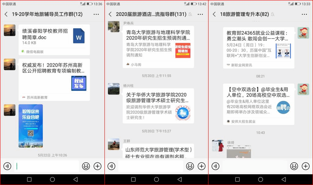 考研就业资讯及时送达,为毕业班学子“最后一公里”明确目标。充分调动网络资源,发挥辅导员工作群、考研指导群、班级工作群等途径,及时收集传达考研就业相关动态信息,让学生掌握考研就业第一手咨询。