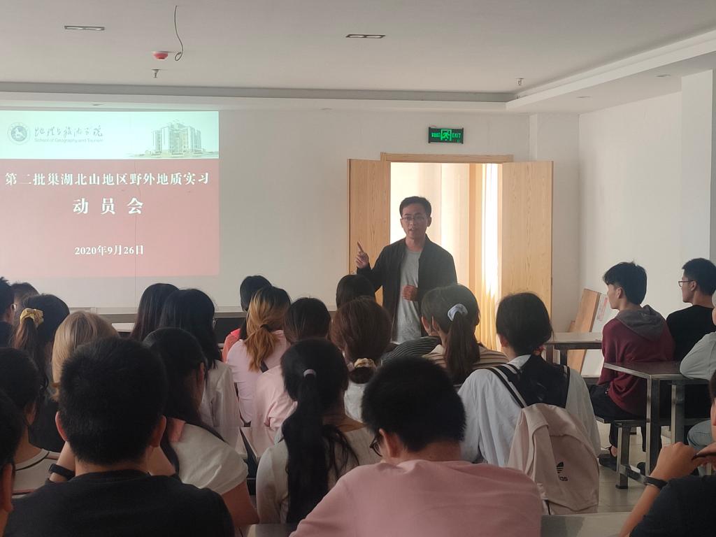 据悉,此次动员会的召开,使同学们进一步明确了巢湖北山地区野外地质实习的目标和任务,坚定了圆满完成实习任务的信心和决心,为本次野外地质实习高效、有序、平安开展奠定了坚实基础。