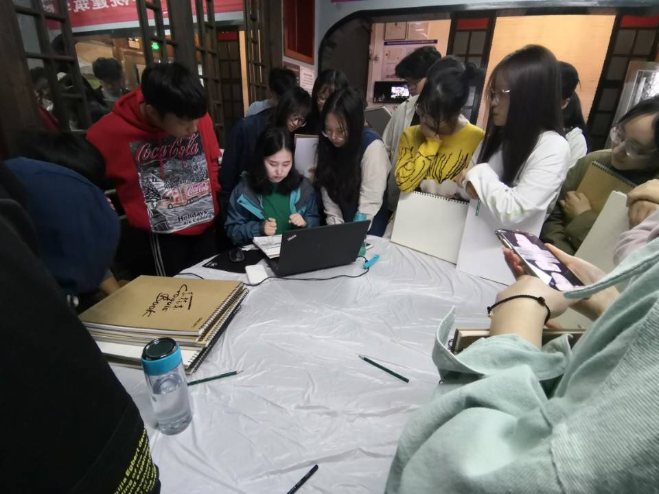 老师带领学生们领略宏村风貌,体味古建筑之美。“南湖春晓,书院诵读,月沼风荷,牛肠水圳,双溪映碧,亭前古树,雷岗夕照”美景跃入纸上。9月24日,老师带队前往南屏与秀里。幽深街巷,祠堂林立。在老师的引导和介绍下,徽文化的浓烈与先人的智慧呈现在学生们眼前。9月25日,全体同学来到黄山市参观中国徽州文化博物馆,黄山美术馆,走过中国历史文化明街-屯溪老街。