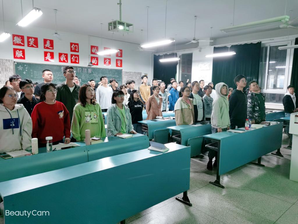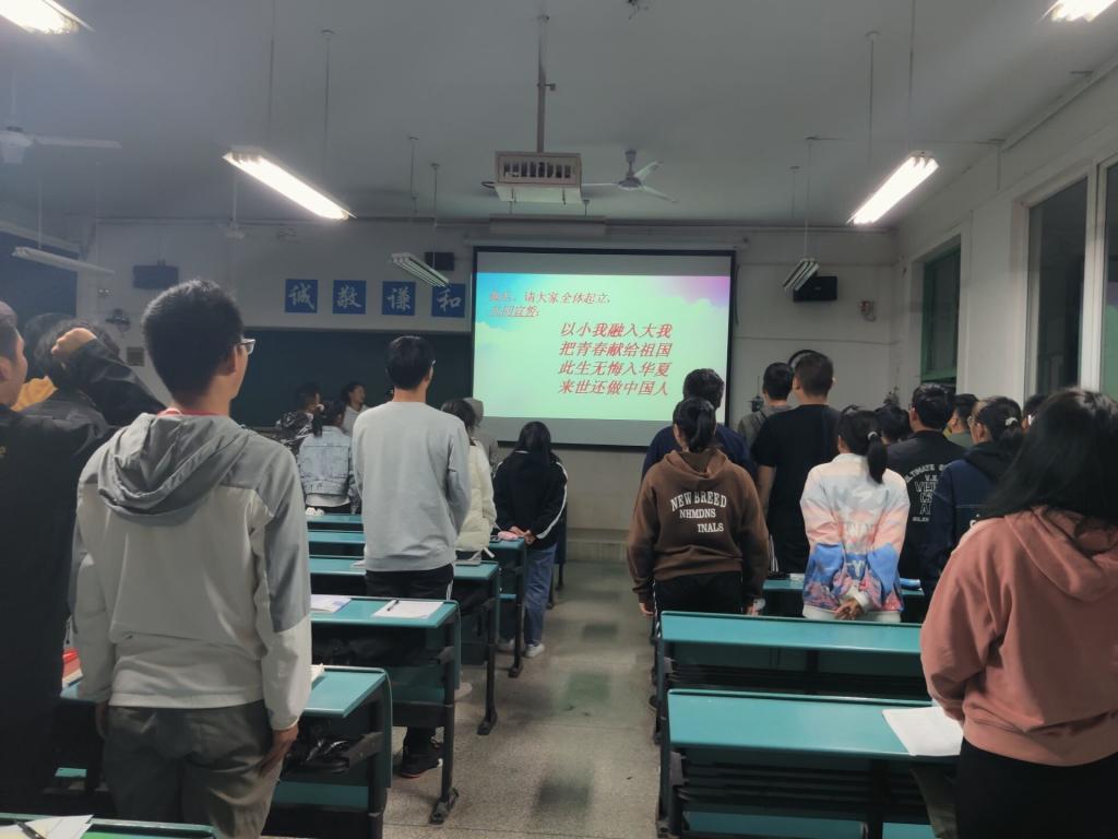 最后,全体同学起立宣誓。“以小我融入大我,把青春献给祖国,此生无悔入华夏,来世还做中国人!”历历在目的庄重誓言,字字刻进了在场所有新时代中国青年的心中。至此,本次“四个一”团员意识教育活动圆满结束。