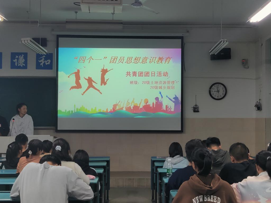 刘少杰 陆峻然 黄海露) 为强化新生团员意识,充分发挥团组织在新生思想教育中的重要作用,10月15日晚7:30,20级土地资源管理专业与20级城乡规划专业联合开展“四个一”团员意识教育活动。本次活动由20级城乡规划团支书刘美慧和20级土地资源管理组织委员林丹倩主持,辅导员刘少杰、两班全体同学参与本次活动。