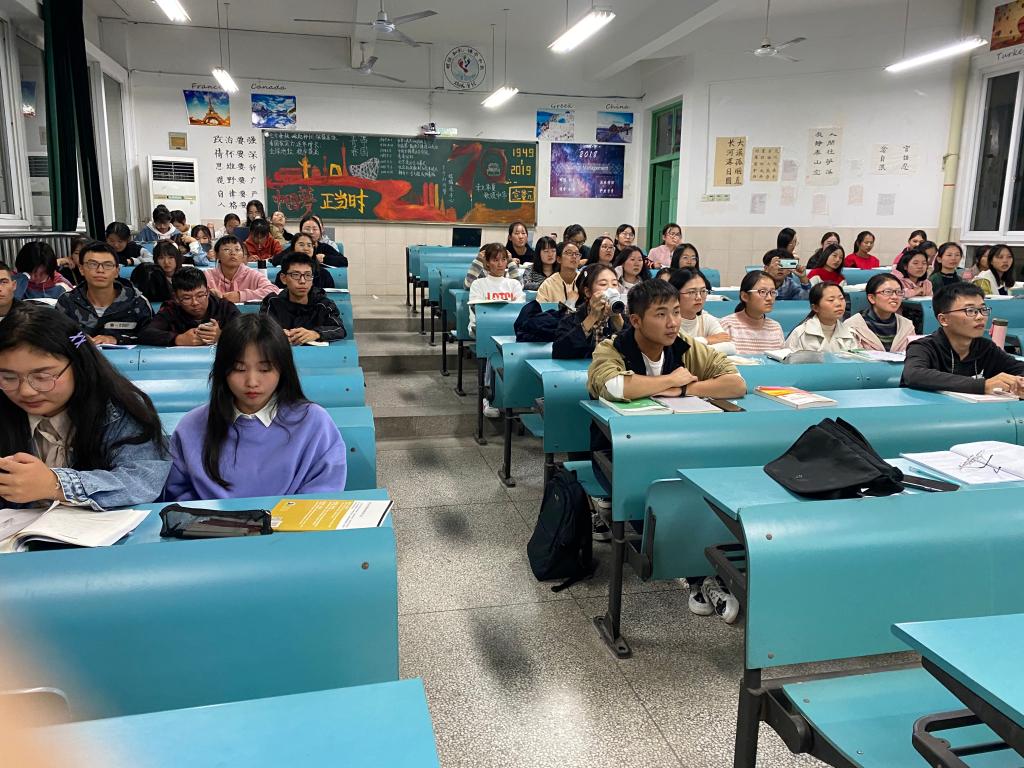 活动第二部分,二班团支书孙浩男同学向大家介绍安徽师范大学办学历史及这么多年以来学校的发展,展示学校风采,看到师大所取得的成就和那些从师大走出去的杰出校友们,同学们纷纷表示,能够成为一名师大人十分的骄傲与自豪,表示会更加努力学习,勇于实践,创造属于我们这一代师大人新的辉煌。