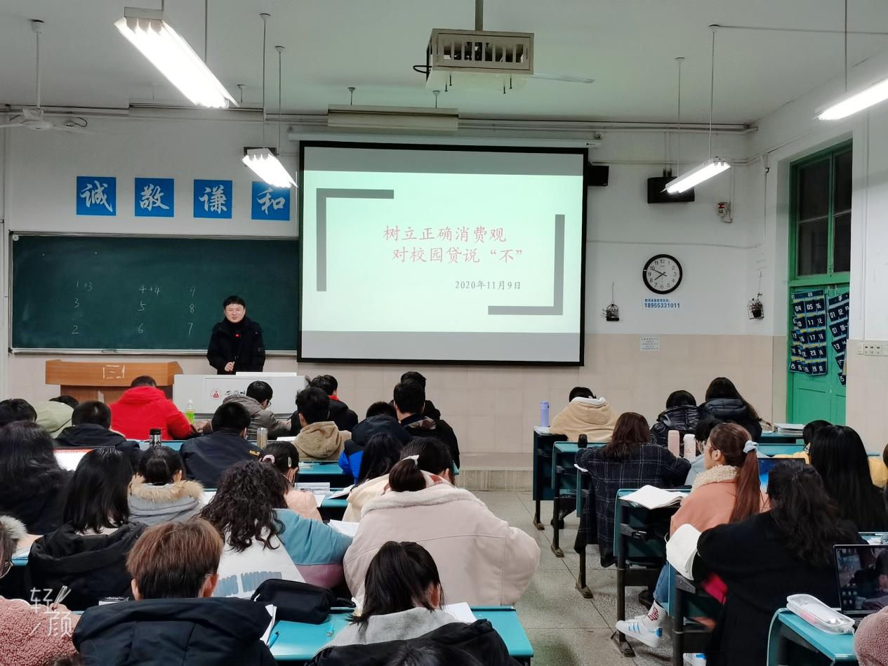 会议开始,刘少杰表示多数同学在宿舍、在教室均存在“冬季为挡寒风,门窗一直紧闭”的行为,并指出此行为存在的安全隐患,接着又指出“一有异况,即配口罩,迅速上报”的必要性。本次班会,刘少杰分别从“交通安全”、“寝室安全”、“拒绝校园贷”以及“谨防传销”四大方面展开讲解。在讲述防范交通安全时,刘少杰特别强调了校内外出行时的注意事项以及如何正确选择安全的交通工具。在讲述寝室安全时,夏海同学针对寝室人际关系安全进行了精彩的发言,赢得了其他同学的强烈认同,接着刘少杰补充讲解了“用电安全”“卫生安全”等内容。之后刘少杰从一系列的案例展开讲解了校园贷和传销的危害、如何学会拒绝校园贷和防范传销组织以及一旦陷入校园贷和传销危机如何安全走出来等内容。刘少杰通过一系列的案例向大家普及了安全知识,同学们用心倾听,安全教育走进每位同学的心中。