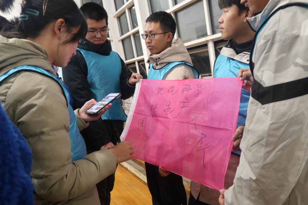 2020级地理科学类同学表示欢迎。之后主持人进行分组,并给每个团队分发不同颜色的衣服,以团队为单位,每个团队都要想出自己的团队旗、队名和团队口号。