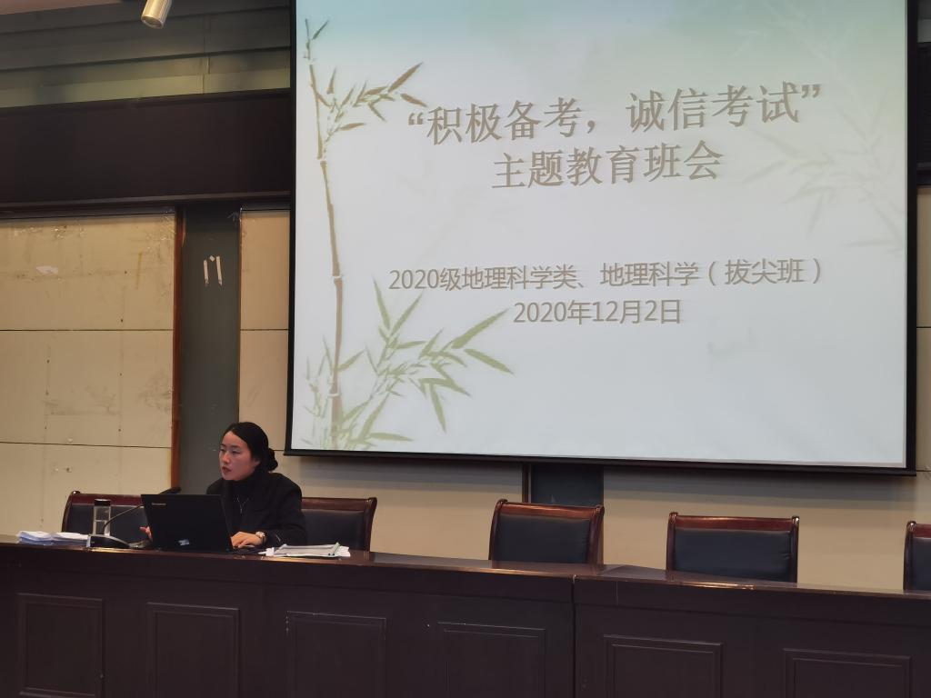 2020级地理科学类和地理科学(拔尖班)全体同学参加会议。会议由辅导员彭媛媛主持。