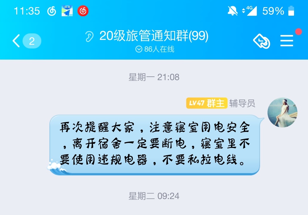 积极落实“零点”汇报制度,各年级各专业以班级为单位,寝室长为监督负责人,每晚23:00辅导员通过“今日校园”了解学生在寝情况,及时掌握学生晚归不归或等情况。为切实加强20级旅游管理专业学生就业安全教育,赵佳慧通过事务性班会、QQ群通知等提醒大家注意冬季寝室用电防火安全及寝室卫生。足探比分