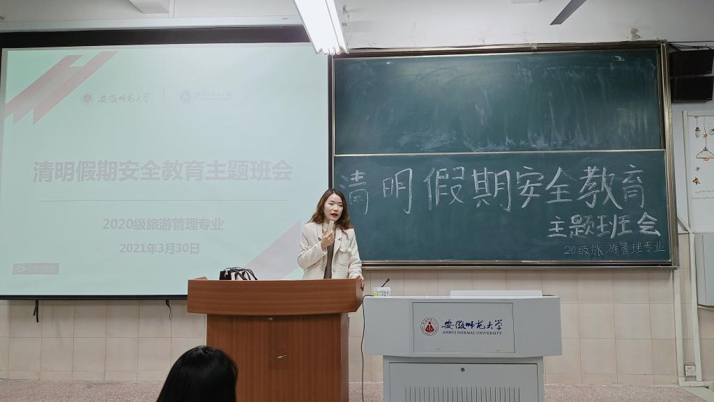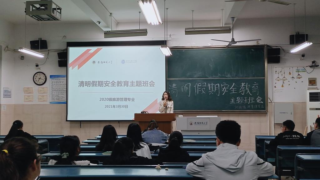 2020级旅游管理专业开展了清明节离校安全教育主题班会,会议由2020级旅游管理专业辅导员赵佳慧主持,2020级旅游管理专业全体同学参加了此次班会。