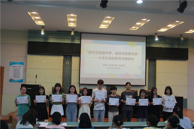 高度重视学生诚信教育,学院以资助诚信教育为契机开展系列活动,各年级各班积极也开展诚信教育主题班会,毕业班辅导员代表学校和学院向所有申请过助学贷款的学生发放《致办理生源地助学贷款毕业生的一封信》并组织签署《安徽师范大学学生资助诚信教育承诺书》等等。资助诚信教育系列活动引导学生把正确的诚信认知、自觉的诚信养成、积极的诚信实践紧密结合起来,进一步提高了大学生“知党恩,感党恩”的思想自觉和行动自觉。