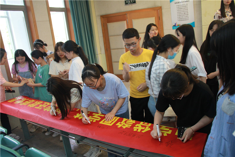 会议最后一项,“助学贷款圆学梦,诚信还款感党恩”签名合影留念。全体在场同学有序在横幅上签名,并合影留念。