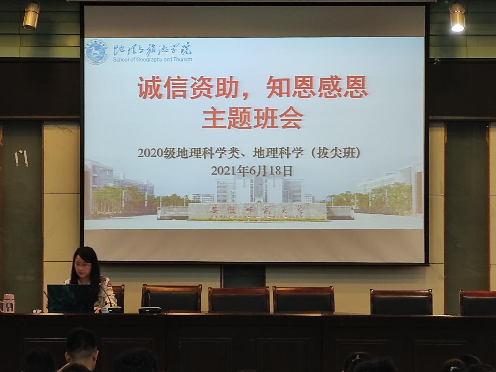 实验楼101报告厅召开“诚信资助,知恩感恩”主题班会。班会由辅导员彭媛媛主持,2020级地理科学类、地理科学(拔尖班)全体同学参与。