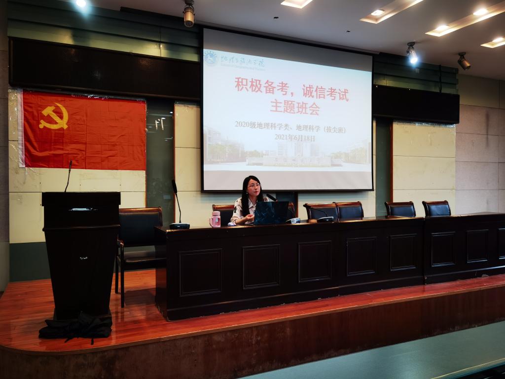 实验楼101召开 “积极备考,诚信考试”主题班会,班会由辅导员彭媛媛主持,2020级地理科学类、地理科学(拔尖班)全体同学参加。
