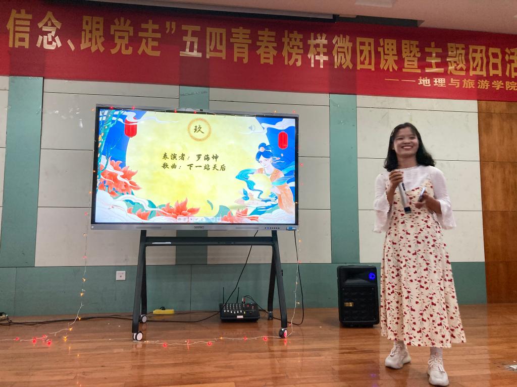 热情同学,踊跃登场展现自我。大家积极上台表演,带动气氛,有充满外国风情的歌曲《try everthing》、《lemon》,也有国语流行歌曲《虚拟》、《慢慢》等,还有大二学长带来歌曲串烧向大一学弟学妹致以祝福,更有压轴出场的舞蹈《helicopter》点燃全场画上完美句号……动人的天籁之音,婀娜曼妙的舞姿,精彩节目轮流上演,充分展示了当代大学生朝气蓬勃、热爱生活的良好精神面貌。
