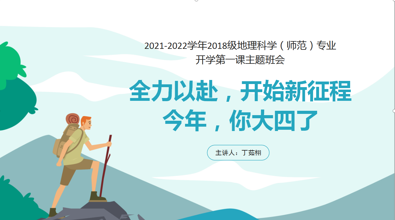 实验楼101报告厅举行主题为“全力以赴,开始新征程”的开学第一课。班会由辅导员丁茹栩主持。