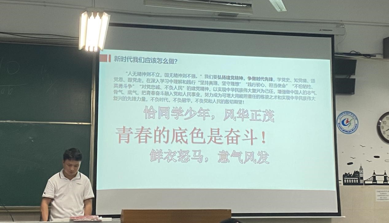 刘少杰鼓励大家积极学习建党精神,探索中国共产党人的奋斗故事,从中学习、启发自己的大学生活和未来规划,敢于拼搏、勇于奋斗,将自己的青春之花绽放在中华大地上。同时他还动员同学们积极提交入党申请书,追求思想进步,努力靠近党组织。