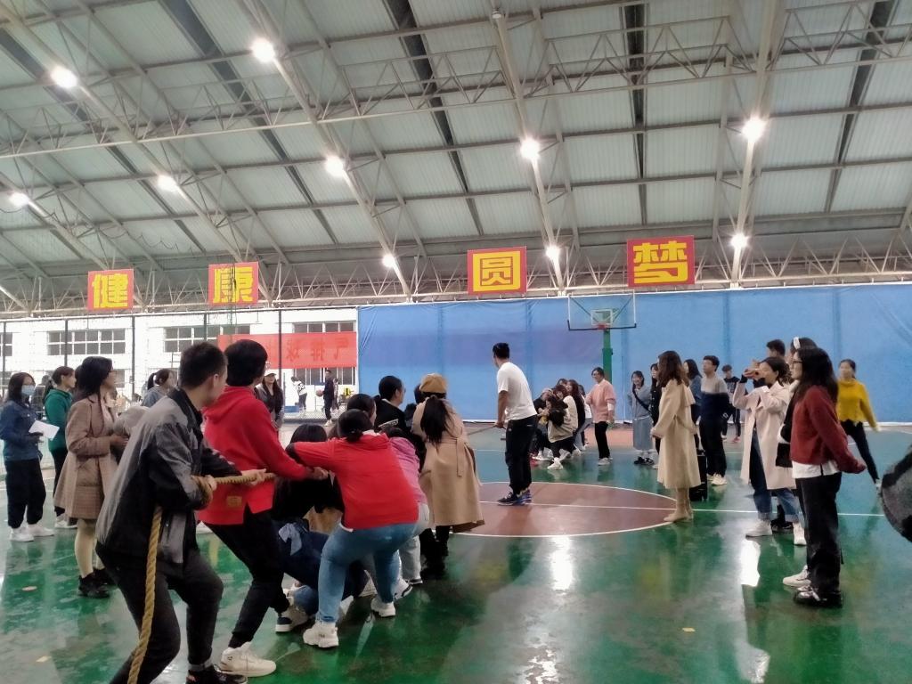 活动伊始,体育委员许林伟组织同学们用报数方式分成了6个游戏小组,每项游戏都会有小组积分,总分位于前三名的小组会有奖品鼓励。接下来就来到了游戏环节。游戏内容分共有四个部分,分别为“拔河”、“计时投篮”、“排球传递”以及“多人多足”。第一个热身小游戏拔河,6个小组,两两对抗,胜出的小组再进行第二轮,虽为传统团队游戏,同学们依旧表现出了高昂的情绪,看似比力气,实则考技巧,欢呼呐喊声此起彼伏,现场气氛热烈。接着第二项的“计时投篮”,每组派出三名同学,一人投球,两人传球,站在罚球线内计时两分钟投篮,数量最多的小组获胜。这个游戏中,男生投篮有优势,让人惊喜的是女生们也表现出不俗的实力,引得同学们连连叫好。休息间隔十分钟后,游戏来到了第三项“排球传递”,每组派出六名同学用手颠传排球,用时最短的小组获胜。传球过程中一片欢声笑语,运动场馆内处处暖意盈盈。最后一项游戏6个小组每位成员都需要参与其中,规定距离,同样是用时最短的小组获胜。多人多足最考验合作和默契,绑住的是脚,联动的是心,整个游戏过程中场馆内都洋溢着笑声和活力。随着游戏环节的结束,这次的户外素质拓展活动也进行到了尾声。班委给每位同学发放饮料,最后大家一起合影留念。游戏全力以赴,活动尽兴而归。