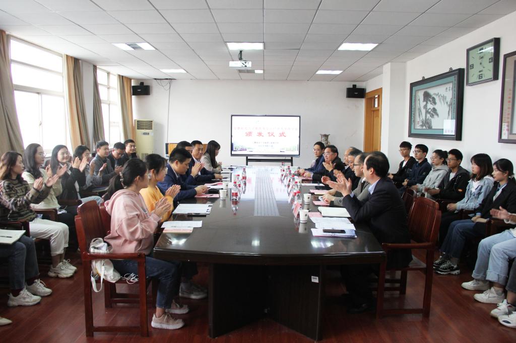 行政楼三楼会议室举行。乔静对与会的领导嘉宾表示热烈欢迎,并介绍了97旅本奖助学金的设立背景和发展历程。随后,贡植斌宣读颁发决定以及获得本年度97旅本奖助学金的人员名单。颁奖仪式环节,1997级旅游管理专业本科班毕业校友代表与贡植斌、项家春分别为丁雅欣、冯安兰等12名获奖受助同学颁发获奖受助证书。