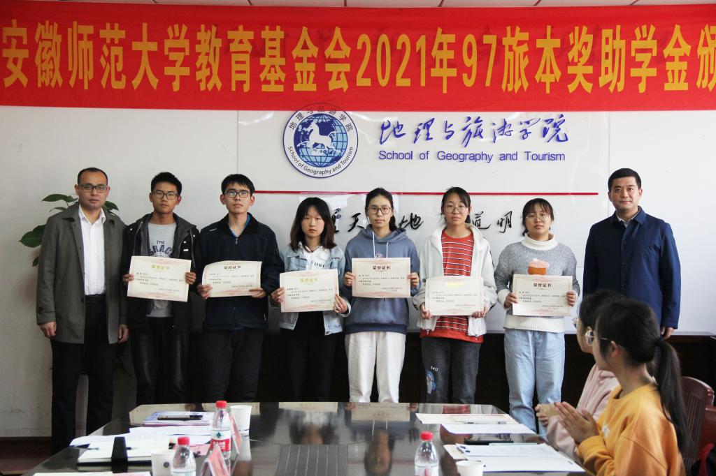 签约仪式结束后, 安徽师范大学教育基金会2021年97旅本奖助学金颁发仪式在足探比分