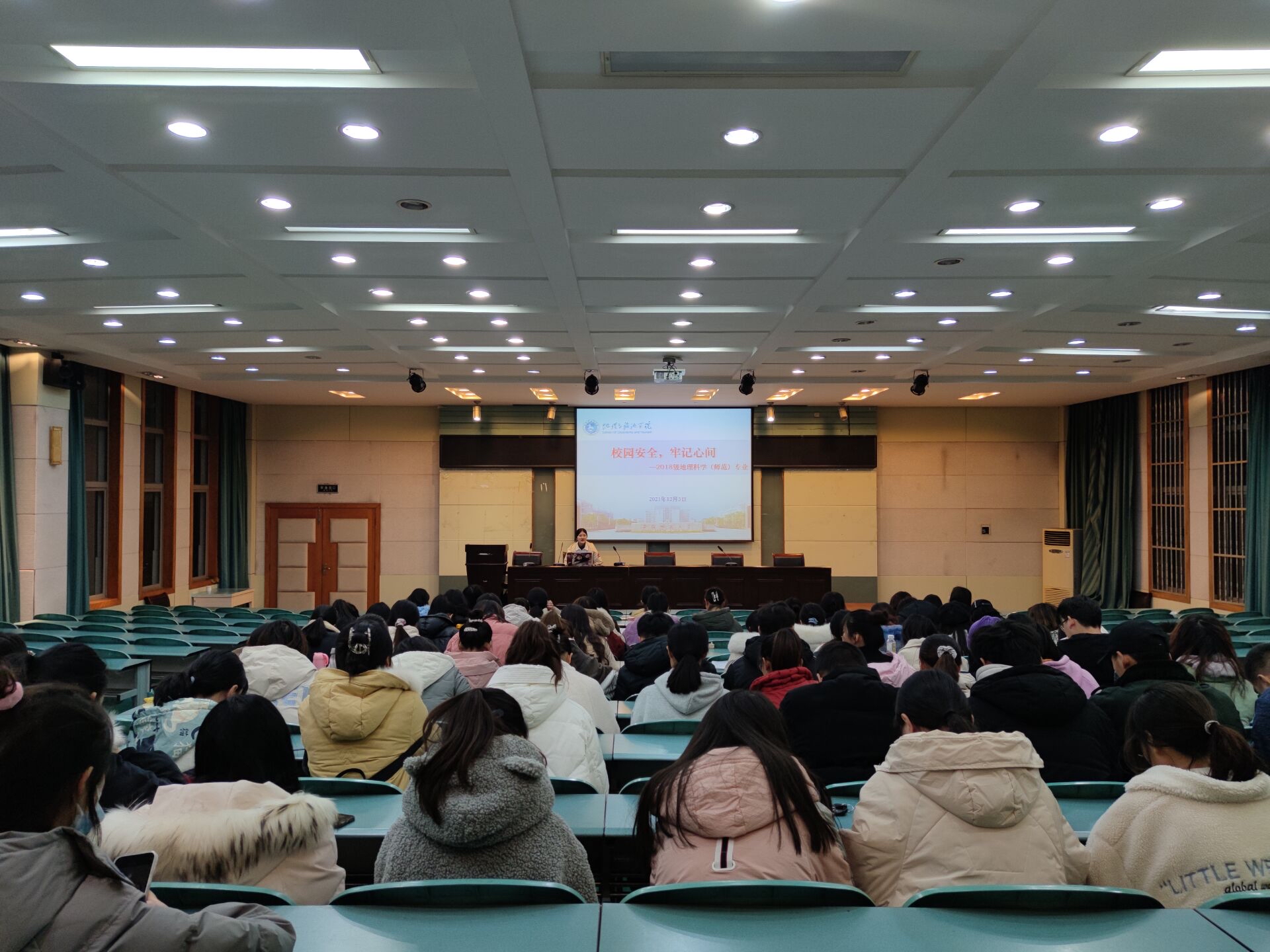 丁茹栩 尹仟仟)为进一步增强学生安全意识,做好冬季校园安全工作,降低安全隐患,保障校园安全,12月3日,2018级地理科学(师范)专业在院实验楼101报告厅举行“校园安全,牢记心间”主题班会。班会由辅导员丁茹栩主持,2018级地理科学(师范)专业全体学生参与会议。