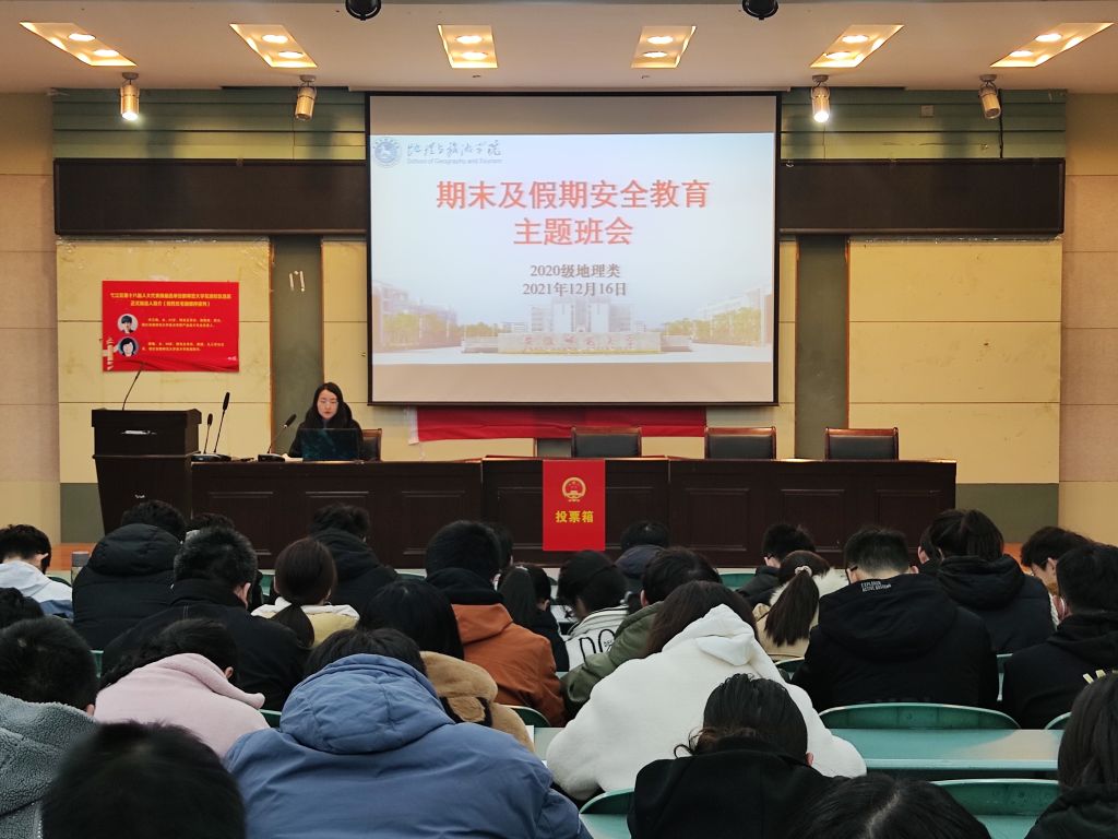 2021年12月16日,2020级地理类各专业召开考风考纪教育暨期末及假期安全教育主题班会。会议由彭媛媛主持,2020级地理类全体学生参会。