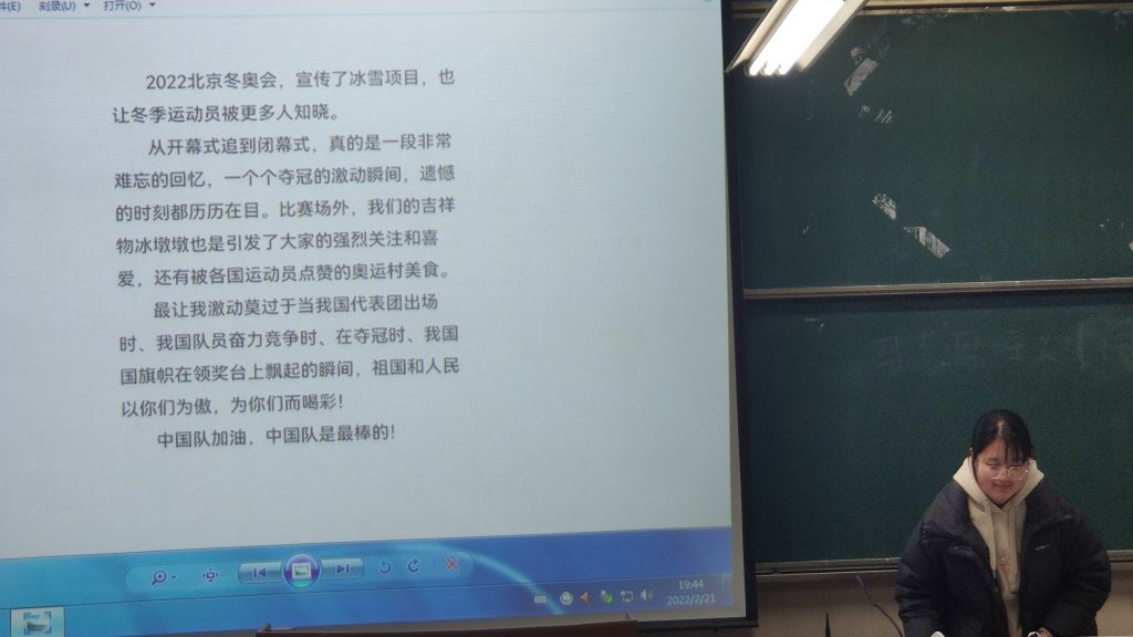 分享会共分为两个部分,第一部分为活动回顾。徐雨菲带同学们一起回顾了上一学年至今2020级旅游管理团支部举办过的形式多样,内容丰富的团日活动,无论是照片留存,或是签字打卡,都是实践的记录,唤起了同学们的美好回忆。紧接着来到第二部分暖冬成果展示。根据寒假实践活动的六大主题:为学思践悟百年路、建设家乡担使命、创新创业展风采、运动打卡迎冬奥、志愿服务在身边、青春共度新时代,徐雨菲依次展示了同学们的实践成果。防控疫情,志愿同行,我们看见了同学们的志愿服务记录,同心抵抗疫情;冬奥意浓,运动青春,我们看见了同学们的滑雪运动打卡,共享冰雪盛宴;探寻年味,感悟家乡,我们看见了同学们对家乡年味的定格瞬间,传递多彩民风。通过此次分享会新时代大学生应该勇担时代责任,用实际行动助力社会发展。在实践中感悟经历,在实践中锐意进取。
