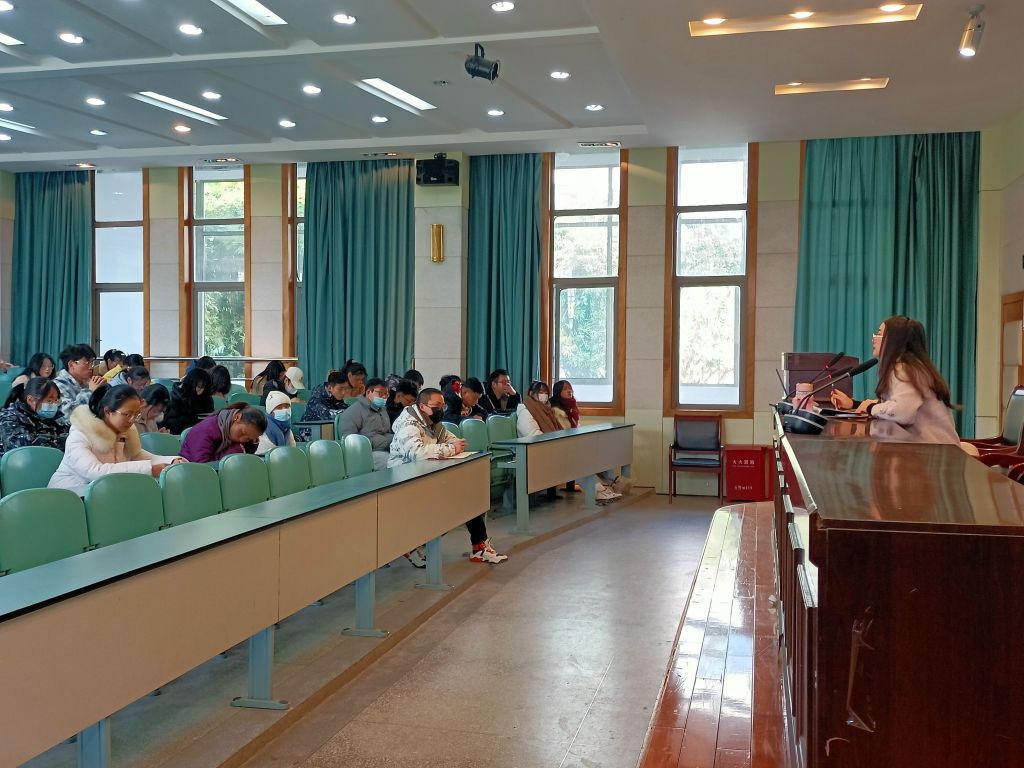 程灵箫 彭媛媛)新学期,新气象。2022年2月20日下午,18地信、20地理类各专业在学院实验楼101报告厅召开了“开学第一课”主题班会,会议由辅导员彭媛媛主持。根据疫情防控要求,本次会议采取线上线下相结合的方式,2018级地理信息科学专业、2020级地理科学(拔尖人才班)、地理科学(师范)1班、地理科学(师范)2班以及地理信息科学专业全体同学参加。